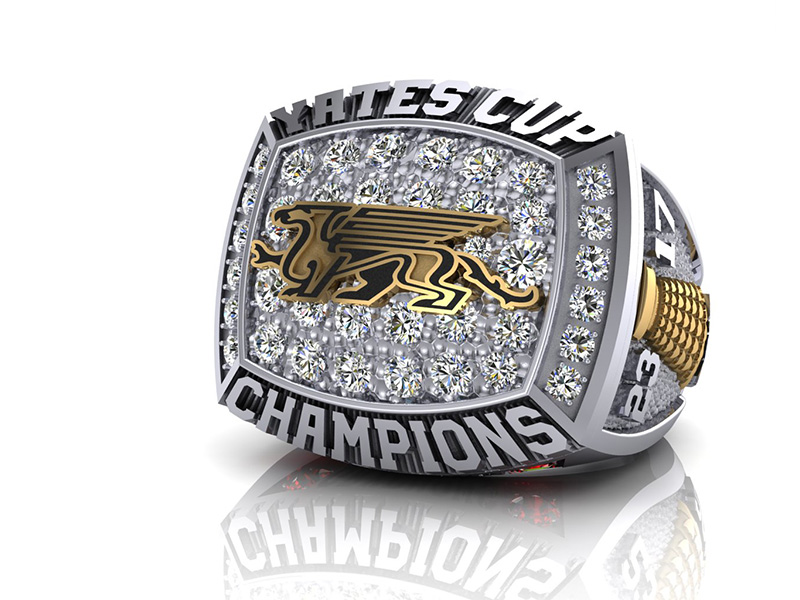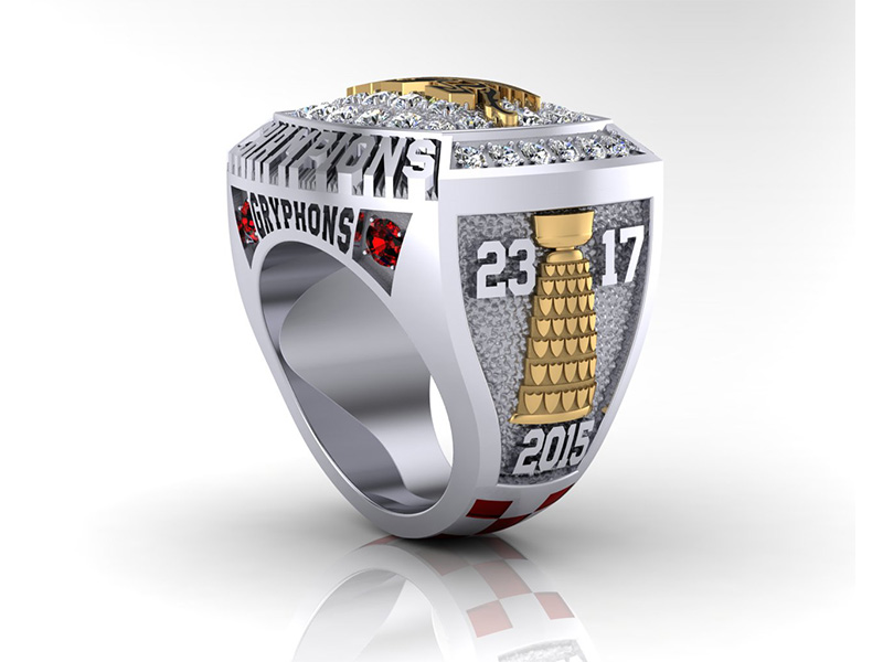 Every ring tells a story and with these designs we have incorporated important accolades and achievements of the GUELPH GRYPHONS championship season.