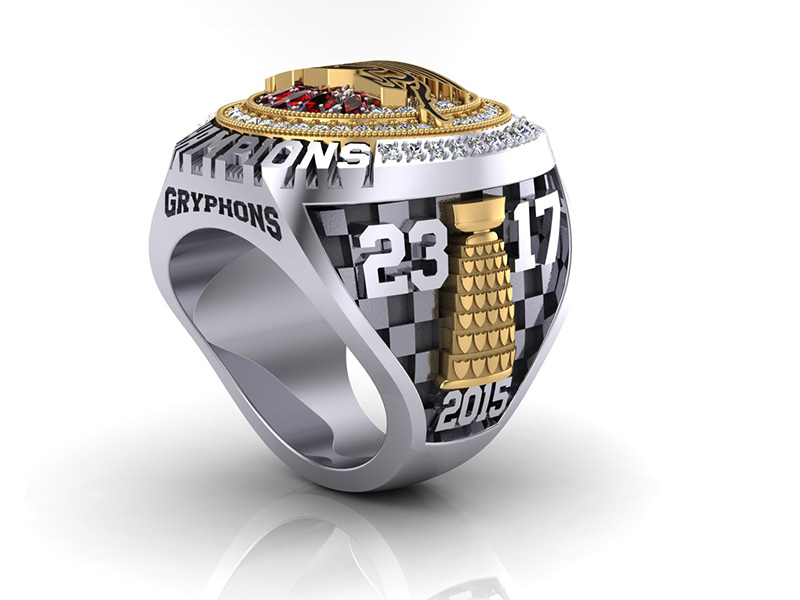Every ring tells a story and with these designs we have incorporated important accolades and achievements of the GUELPH GRYPHONS championship season.