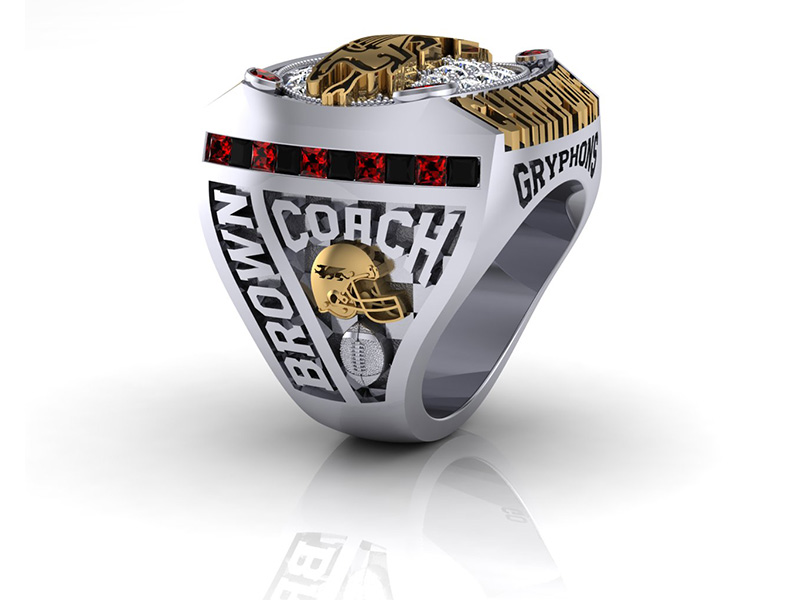 Every ring tells a story and with these designs we have incorporated important accolades and achievements of the GUELPH GRYPHONS championship season.